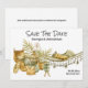 Uma bela ilustração de confortável casa e ilha com confortos apresentando uma rede com confortáveis almofadas e travesseiros xadrez pendurados atrás de cestas de vime; vasos de plantas de cerâmica; almofadas marrons e verdes e folhas e folhagens de plantas secas. Este design moderno e atraente é ideal para celebrações de verão; primavera; outono; boêmio; país; ao ar livre; bosque e casamento na floresta. Personalize o texto e adicione detalhes extras no verso, se necessário.