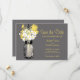 Perfeito para um casamento no estilo country ou talvez você apenas ame Mason Jars! Mason Jar pendurado num gancho cheio de flores selvagens do campo. Uma Legal Cinza de carvão contra o enforcamento de Mason Jar e flores silvestres em cores de amarelos e margaridas brancas. Se você tiver alguma dúvida sobre este design ou quiser uma mudança de cor, envie um e-mail para mim paula@labellarue.com Além disso, verifique se os Cartões SENTADOS RSVP, RECEPÇÃO e CONVIDADO correspondem!