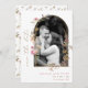 Um bonito casamento salve o anúncio da data com sua foto favorita em um quadro de arco dourado cercado por flores silvestres mauve e cor d'água rosa e folhas verdes. "save the date" (salvar a data) está em caracteres dourados e modernos de caligrafia colocados verticalmente no lado esquerdo da placa. Personalize com seus detalhes em mauve/rosa e ouro. Ao contrário, há um padrão de flores silvestres.