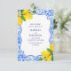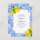 Celebrate your special day with this charming Mediterranean-style wedding design, featuring traditional Italian tiles in light blue and hand-painted watercolor lemons. Perfect for a rustic, coastal, or Amalfi-inspired wedding, this elegant design captures the charm of Southern Italy with its intricate patterns and fresh citrus touches. Fully customizable with your wedding details, this enchanting Italian design adds a touch of Tuscan romance to your celebration. Ideal for destination weddings, summer ceremonies, and Italian-themed receptions. For complementary products, please see the collection of this design.