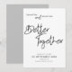 Um moderno design romântico para pedir aos seus convidados para salvar sua data de casamento com um roteiro preto no estilo de escrita informal para Melhores Juntos no centro para coordenar com o "e" no mesmo roteiro de conjunto entre seus nomes. O resto do texto pode ser facilmente personalizado. Um plano de fundo de cinza está no verso, que pode ser alterado para uma cor diferente se você desejar por meio da opção personalizar mais.