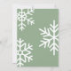 This minimalist merry and almost married save the date doubles as a holiday card from an engaged couple. The design features classic typography against a green background with snowflakes. Photo template via Pixabay licensed under CC0 and must be replaced with your own photo