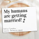 Meus Humanos Estão Se Casando! Deixe o seu melhor cachorro anunciar seu casamento com este cartões salve a data de cachorro de estimação moderno e simples "Meus Humanos se Casam". Personalizar com nomes, data e local do casamento. Este casamento com cães salve o anúncio da data será um sucesso para a sua família e amigos. COPYRIGHT © 2020 Judy Burrows, Black Dog Art - Todos Os Direitos Reservados. Meus humanos estão se casando com um cão casado Salve a data