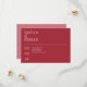Anuncie seu dia especial com nossa data minimalista, projetada para combinar com nossa suíte de convite de casamento vermelho. Apresentando uma cor vermelha quente, esta placa captura a alegria e o entusiasmo de sua próxima celebração. O texto está em uma fonte fácil de ler, garantindo que sua mensagem seja clara e na moda. Com tipografia cuidadosamente organizada, esta salva de data combina beleza e simplicidade, definindo o tom perfeito para o seu casamento. Ideal para casais que apreciam a design moderna e subestimada.