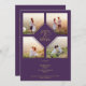 Announce your wedding with a sophisticated and captivating design with this Save the Date card. Against a striking purple backdrop, the faux golden details add a touch of elegance. The center of the card features a collage of 4 photos, capturing special moments from your love story. Additionally, on the back, you'll find a convenient QR code for easy access to more details and information.