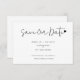 This Save the Date card features chic script typography with a subtle heart accent, creating a modern and elegant presentation. The clean layout highlights the couple’s names and wedding date in a clear and balanced format.