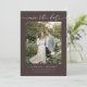 This save the date card features an engagement photo framed by elegant handwritten script on a rich mocha brown background. The clean, modern layout highlights your photo while keeping the announcement timeless and romantic. The back includes a QR code so guests can easily visit your wedding website for details and celebration information. Personalize the names, date, and location to share your wedding plans with friends and family.