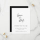 Um cartão de save the date de casamento com script minimalista. Este cartão de save the date apresenta um texto com script elegante e um tema minimalista em preto e branco. Personalize o texto com todos os detalhes do seu dia especial.