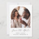 Este simples e minimalista Cartão Salvar a Data apresenta um boho de fotos acima das palavras "Salvar a Data" em um elegante roteiro preto, seguido pelos nomes do casal, data do casamento e cidade em sans serif em um fundo branco. Adicione uma segunda foto horizontal e uma mensagem mais detalhada com informações adicionais sobre o contrário.