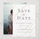 Anuncie o seu casamento com estilo e calor usando este cartão minimalista de aviso prévio com foto. Com um sofisticado design de monograma bege e espaço para a foto do casal favorito, este cartão é a combinação perfeita de elegância e personalização.