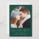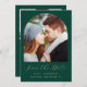 Este simples e minimalista Cartão Salvar a Data apresenta um boho de fotos acima das palavras "Salvar a Data" em um elegante guião de manuscrito dourado, seguido pelos nomes dos casais, data do casamento e cidade em sans serif em um fundo verde esmeralda. Adicione uma segunda foto horizontal e uma mensagem mais detalhada com informações adicionais sobre o contrário.