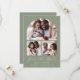 Este simples e minimalista Cartão Salvar a Data apresenta um arco de colagem de 3 fotos acima das palavras "Salvar a Data" em um elegante roteiro branco, seguido pelos nomes do casal, data do casamento e cidade em sans serif em um fundo verde sábio. Adicione uma mensagem mais detalhada com informações adicionais sobre o inverso, juntamente com um código QR para ajudar seus convidados a visitar seu site de casamento.