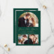 Este simples e minimalista Cartão Salvar a Data apresenta um arco de fotos personalizado acima das palavras "Salvar a Data" em um elegante roteiro de manuscrito dourado, seguido pelos nomes do casal, data do casamento e cidade em sans serif em um fundo verde esmeralda. Duas fotos quadradas menores aparecem na parte inferior do cartão. Adicione uma quarta foto horizontal e uma mensagem mais detalhada com informações adicionais no verso.