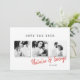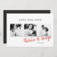 Um casamento de fotos de na moda mínimo moderno salve o cartão de data. Com espaço durante um ano em revisão ou mensagem no verso.