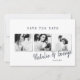 Um casamento de fotos de na moda mínimo moderno salve o cartão de data. Com espaço durante um ano em revisão ou mensagem no verso.