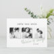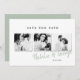 Um casamento de fotos de na moda mínimo moderno salve o cartão de data. Com espaço durante um ano em revisão ou mensagem no verso.
