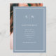 Este elegante e moderno casamento salva os cartões de data apresentam um simples design de texto minimalista azul e branco empoeirado, com um quadro clássico na fronteira. Adicione suas iniciais ou monograma para torná-las completamente suas e adicione sua foto pessoal favorita no verso.