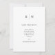 Este casamento elegante e moderno salva os cartões de data apresentam um simples design de texto minimalista preto e branco clássico. Adicione suas iniciais ou monograma para torná-las completamente suas.