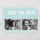 Na moda e casamento elegante salve a data design contém letras grandes em negrito em uma variedade de cores quic e de fundo e um padrão moderno de listras zigzag.