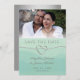 Letras de texto simples, elegantes, cinzas prateadas em combinação com elegante fundo verde de menta aquosa e corda prateada elegante. Moderno, minimalista, guarde o convite para o casamento, com foto personalizada e folha de prata na moda. Combinação perfeita com o tema do casamento "Amarre o nó"!