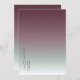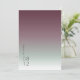 O pano de fundo de todas as peças neste conjunto minimalista de casamento é um gradiente de cores que vai da burgundy escura a verde-sábio macio a branco. O cartão 'Salvar a Data' do casamento mostrado aqui apresenta um layout moderno e elegante e fonte de sans serif contemporânea para acrescentar a sua elegância subestimada. Adicione facilmente seus nomes e data de casamento usando o modelo fornecido. Procure ID741 para ver o conjunto completo de produtos correspondentes na névoa burgundy ou escolha uma das outras combinações de gradiente disponíveis para se adequar à paleta de cores do casamento.