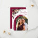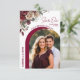 Avise seus amigos e família para salvar a data do seu próximo casamento com esta bela carta. Apresenta um belo design moderno com um aglomerado de rosas cor de burgundy e creme, e a sua fotografia num quadro em forma de arco. O título é impresso em letras modernas com o seu nome, a data do casamento e a localização articamente colocada ao redor do arco. Essas cartas certamente causam uma impressão, e são uma maneira maravilhosa de começar sua jornada de casamento.