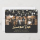 Cartões salve a data de fotos de casamento preto e ouro personalizados elegantes com uma fonte moderna. Personalize facilmente este preto, salve a data com suas imagens e detalhes de casamento, incluindo um site de casamento.