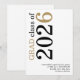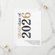 Modern Black Gold Text 2026 White Graduation. Available digitally and printed. A contemporary typographical design with stylish large typography rotated and to the left hand side at the top in black and gold. Easily personalise the rest of the text.