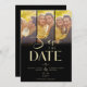 Modern Black Trendy Collage Wedding 3 Photos Save the Date with Envelope.