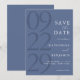 Easily personalize your wedding save the date cards with this editable template. Features minimal elegant typography design in blue color.