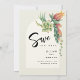 Suculentos maravilhosos sentam-se sobre ricas naves e tons de marfim, aparando um inset de arco e acrescentando apenas o toque certo de cor a este moderno bonde, salve o convite da data. Este buquê suculento inclui a flor dos pendens de Cotyledon. Durante a primavera e o verão, estas flores em forma de sino, florescem e penduram nas extremidades dos ramos. Os outros suculentos florescem no primavera, Verão e outono. Seus detalhes de eventos, na tipografia moderna, terminem a design. Nas costas, outro buquê suculento desenhar a atenção para o anúncio de um próximo convite a ser seguido. Simples. Elegante. Perfeito para todas as estações e comemorações de casamento.
