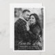 Announce your wedding with this elegant photo save the date card, featuring a vertical engagement photo framed by a crisp white border for a clean, timeless look. “Save the Date” is displayed in graceful white calligraphy script, with the couple’s names, wedding date, and location shown below in refined serif lettering for a balanced and sophisticated layout. The minimalist design allows your photo to take center stage while maintaining a polished, classic feel. Ideal for formal weddings, black tie ceremonies, classic venues, and modern traditional wedding styles, this personalized photo save the date coordinates beautifully with matching invitation suites and offers a stylish way to share your wedding date with family and friends.