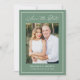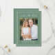 Announce your wedding in style with this modern photo wedding save the date, featuring a deep sage green background, white calligraphy script, and a coordinating white border. Your vertical photo is centered within the design, with your names, wedding date, and location displayed below in clear, easy to read lettering. This modern wedding save the date is ideal for garden weddings, outdoor ceremonies, and spring or summer weddings. The back is blank, giving you space to add a wedding website and additional photos.
