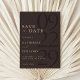 Easily personalize your wedding save the date cards with this editable template. Features minimal elegant typography design in brown color.