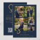 Modern Collage Wedding 5-Photos Navy Blue & Faux Gold Script Typography Save the Date Card Design with Back QR Code.