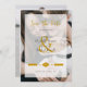 Featuring captivating photographs on the front and back, this design combines a semi-transparent white background with a delicate veil effect, subtly highlighting your images and adding a touch of mystery. The texts in faux gold and dark gray, with a combination of modern and calligraphic fonts, capture the essence of your love story.