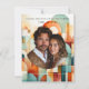 Personalize com sua foto favorita. Bonito, moderno, geométrico, Guarde o cartão Data com formas em tons de rosa, pêssego, laranja, verde, lacre e azul.