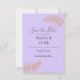 A charming save-the-date invitation features a warm Lilac background framed by delicate leafy details for a soft, elegant touch. Stylish, refined text highlights the occasion, with customizable spaces for names, date, and address. Combining classic design with modern convenience.