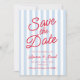 Reserve A Data Modern Minimalist Blue and Red Stripes Wedding