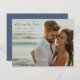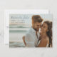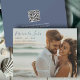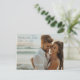 Anuncie sua noivado com meu cartão de data moderno, salve a data com a opção Salvar nossa data em um estilo de tipografia de script de tendência que evoca o aspecto da letra da mão. Projetado para acomodar sua foto favorita de casal de sangramento horizontal ou orientada à paisagem, esta simples placa apresenta uma camada de texto azul litorânea com seus nomes, data do casamento e local do casamento. Estes cartões de praia invertem a cor azul-sólida complementar. Para ver a suíte de casamento correspondente, visite DotellABelle no Zazzle.