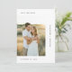 Announce your special day with this Modern Script Minimalist Wedding Photo Save the Date. Perfect for the modern, romantic couple, this design blends elegant calligraphy with a minimalist aesthetic, creating a chic and contemporary vibe. The double-sided card features a customizable photo, adding a personality to your announcement. Whether you're planning a casual or luxury event, this save the date card sets the tone with its timeless black and white palette and sophisticated, handwritten design. Let your love story shine with this cool and classy wedding stationery essential.