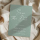 Reserve A Data Modern script sage green typography wedding save