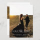 Capture the essence of your love story with this romantic Save The Date announcement card. This design features a couple's full photo on front and another photo on the back. An elegant typography script clearly states 'Save The Date' and provides space for the couple's names, wedding date, and location, along with a note that the formal invitation will follow. It's a perfect blend of personal sentiment and essential information for your wedding guests.