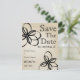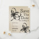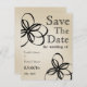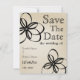 Um cartão de data salvo com um esquema de cor preta e castanho. A placa apresenta ilustrações de flores pretas nos cantos superior esquerdo e inferior direito. Personalize o texto preto com suas informações. Fundo bronzeado.