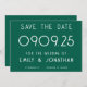 Tipografia Branca Moderna Casamento Verde Esmeralda. elegância moderna com esta design de tipografia na moda totalmente personalizável. Personalize facilmente o texto e, se você tiver um site de casamento, gere automaticamente um código QR para ele no verso substituindo o URL de amostra para o URL do seu site de casamento. Você pode excluir o código QR de amostra se não for necessário por meio da opção editar mais, onde você também pode editar cores de texto e estilos e cores de fundo em cada lado, se desejar.