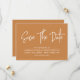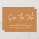 A caligrafia moderna salvará a data com um fundo cor de laranja terrestre e um código QR digitalizável para um site ou informações de contato no verso.