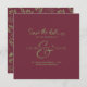 Belo burgundy moderno salve os convites de casamento com um design de padrão verde de outono nas costas.