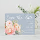 Apresentando o novo Save the Date Floral Moderno e Elegante com Peônia em Aquarela em Azul Desbotado, com fundo azul desbotado e elemento floral lindo - peônias em aquarela pastel rosa, fonte de texto elegante e branco. A combinação perfeita de elegância minimalista moderna e charme de peônia. Você pode personalizar as palavras, estilo de fonte, cor e tamanho deste cartão de convite. Você também pode adicionar sua foto favorita no verso, se desejar. Capture a essência da elegância moderna e celebre seu dia especial com nosso Save the Date Floral Moderno e Elegante em Aquarela. Peça o seu hoje e deixe que sua história de amor floresça nos corações dos seus entes queridos. Itens combináveis disponíveis na coleção.