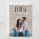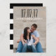 LINHAS PRETAS E BRANCAS - FOTO MODERNA SALVE O ANÚNCIO DA PLACA DE DATA. ELKE CLARKE © Disponível em www.zazzle.com/epclarke. As faixas de música salvam as datas com sua foto de noivado na frente com uma camada elegante de texto de script. Na parte de trás, um padrão riscado preto e branco tem o texto do anúncio do casamento que você pode personalizar. Outras cores e estilos disponíveis em nossa loja.