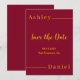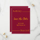 Este elegante casamento burgundy e dourado, salvo a data, é perfeito para um casamento moderno. O simples design apresenta uma elegante caligrafia de ouro num fundo burgundy.